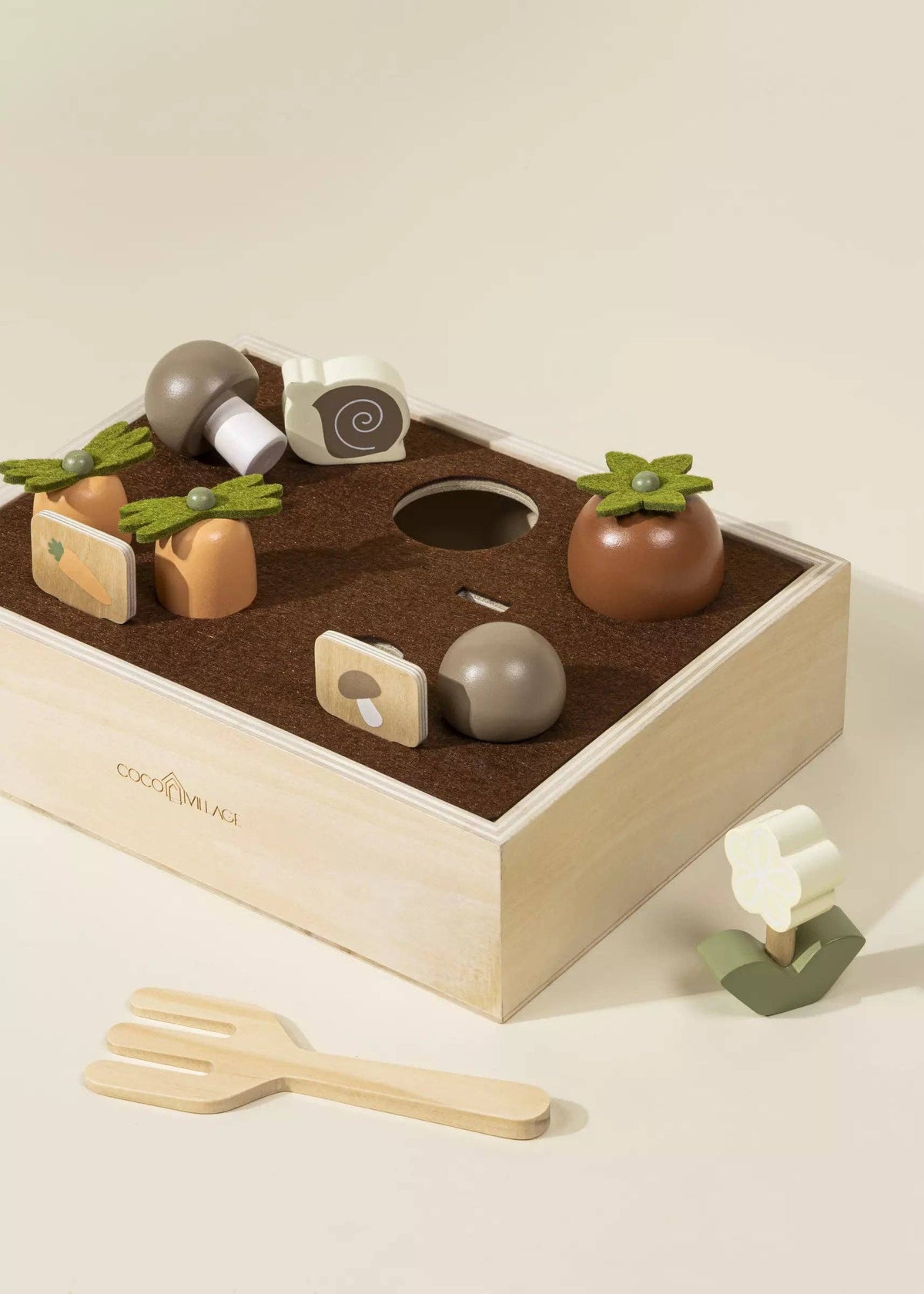 Accompanied with carrots, mushrooms, and tomatoes, it provides children a unique opportunity to explore nature in a playful and safe manner.