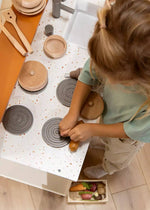 Cooking at home always gives us the opportunity to choose foods that nourish our bodies in a conscious way. With this beautiful kitchen, we give children the opportunity to incorporate the habit of cooking at home through play.